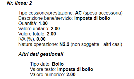 Il file XML creato in automatico per l'invio al servizio SdI contiene l'indicazione del bollo in fattura