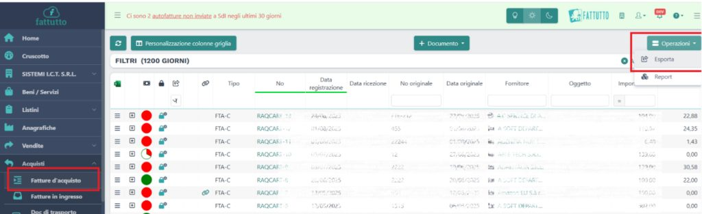 Stampa multipla fatture d’acquisto
