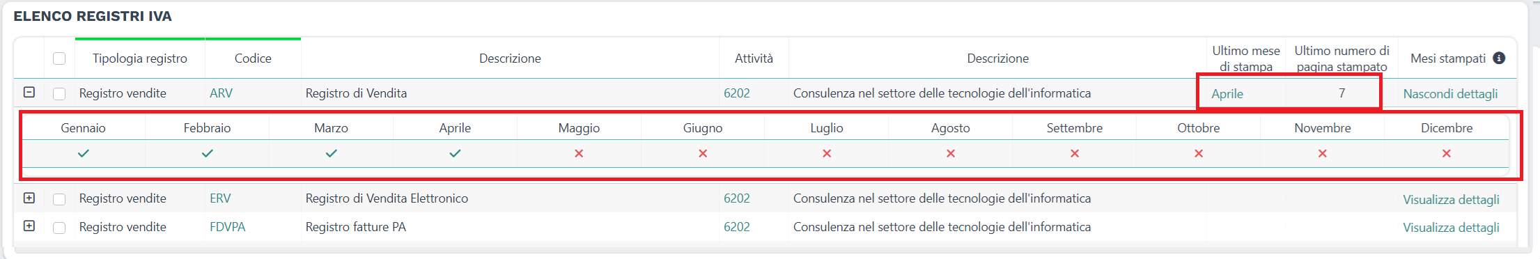 - il dettaglio dello stato di stampa definitivo per tutti i mesi.